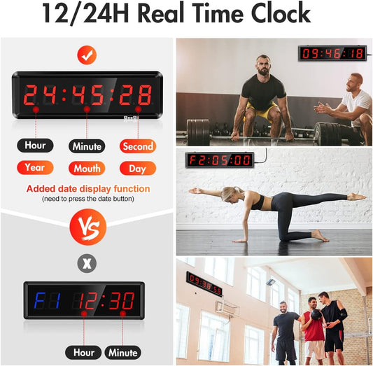 Gym Timer,Led Workout Colck Count Down/Up Clock,11.5" X 4" Ultra-Clear Digital Display, Power Bank Compatible with Workout Metal Stopwatch, Multi-Scenes with Remote (1.5 Inch Red)